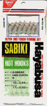 There are hundreds of sizes, styles, colors and hook arrangements in the Sabiki line, but generally I've found that one or two styles will work for you depending on the type of bait you are after. In our area, I use the fish skin with a green bead style in a # 8 size with either 6 or 8 droppers. Many people like the #6 size, but it has smaller hooks and lighter lines than the #8. You will notice that the hook sizes are the opposite of what you are used to. Sabiki hooks are measured in millimeters and as the hook number goes up the hook gets larger. Along the upper Gulf coast in Alabama, Mississippi, and Louisiana most of the anglers prefer the size #18 or #20 Sabiki rigs with only two droppers. They are rigged on 40 and 60 pound line for the large blue runners and bonito and generally fished around structure where there are a lot of toothy gamefish that will take your bait if you don't get him in the boat quickly.